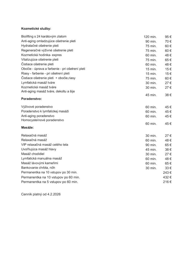 Cenník platný od 4.2.2026 |